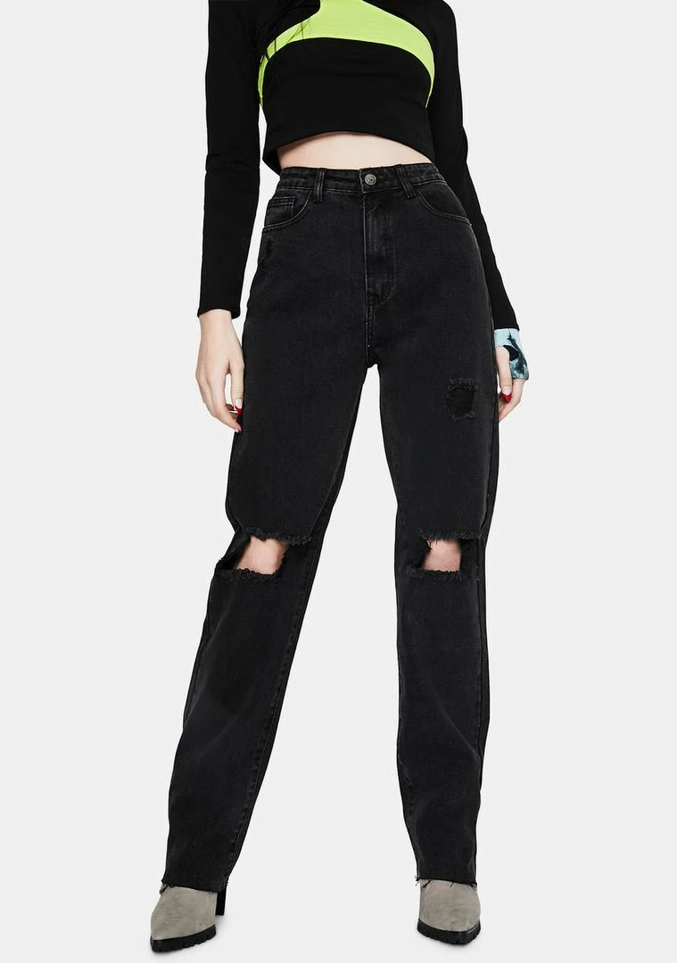 cuz you pull the moves. These denim jeans are high waisted and distressed.