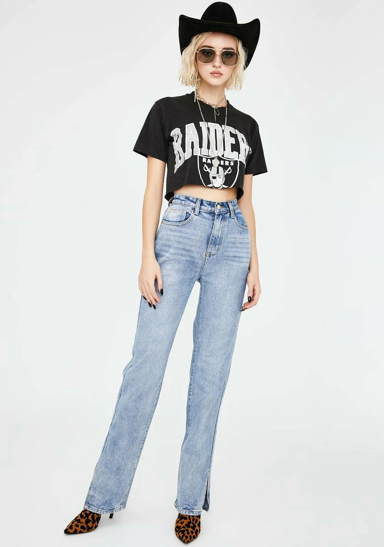 YOLO, babe! Live it up in these dope high waist denim jeans that have classic pockets, button fly closures Nâ sikk side split hems.