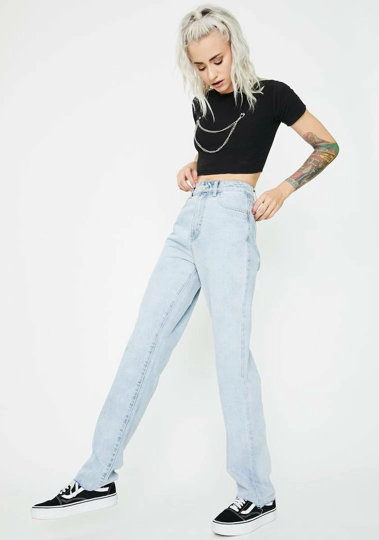 take it to the streetz, babe. Look dope AF in these high waist denim jeans that have classic pockets, button fly closures N’ supa slim fit.