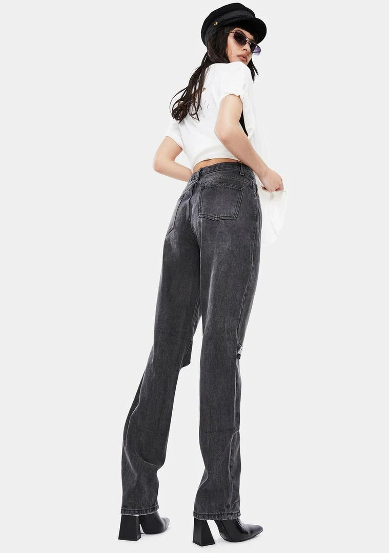 Momokrom Bottoms Washed Black Double Ripped Jeans