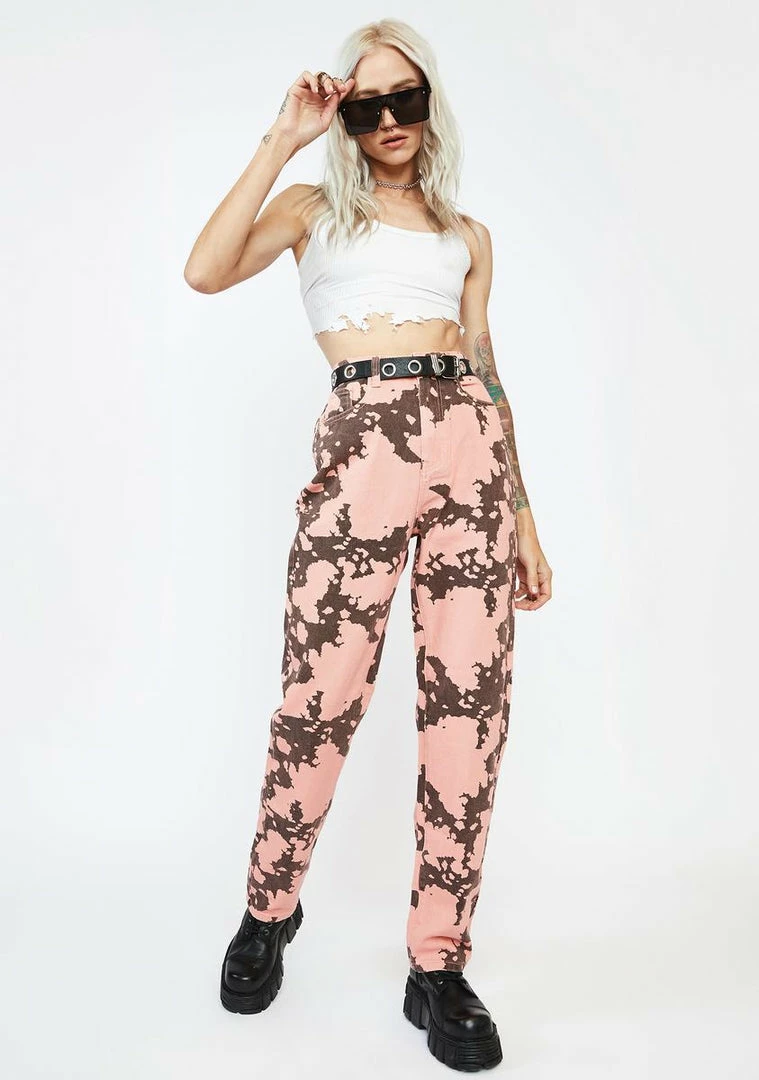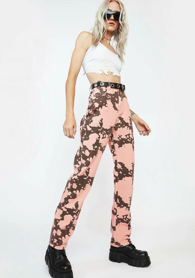 cuz you’re going wild, babe! These straight leg denim jeans have a high waist fit, functional pockets, and a cow print all over.