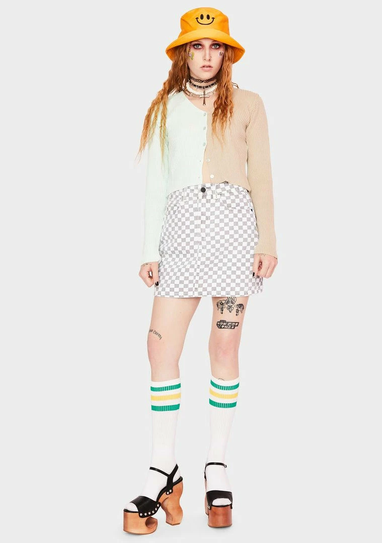 Momokrom Checkered Denim Skirt Bottoms