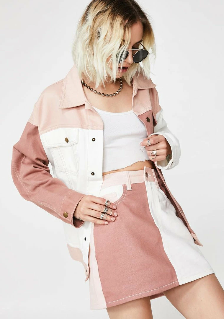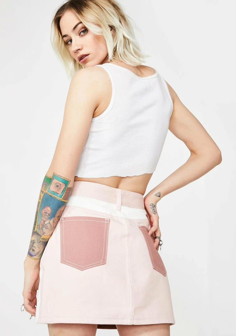 will have ya servinâ looks. Be a total babe in this mini skirt that has a high waist fit and a colorblock design.