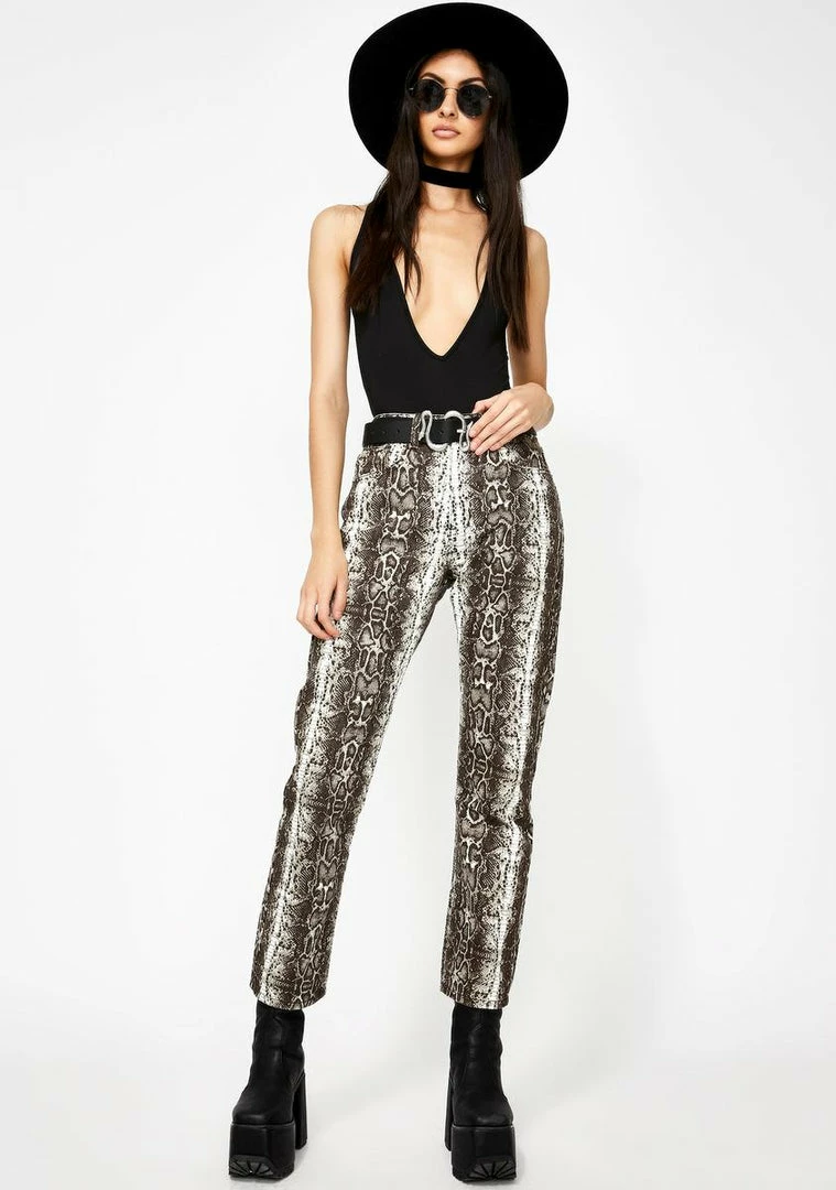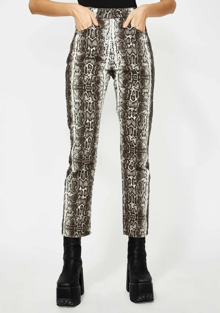 cuz you have a poisonous bite, baby! Yer a cold blooded mama in these high waisted jeans that have sikk snakeskin construction Nâ a cropped legs.