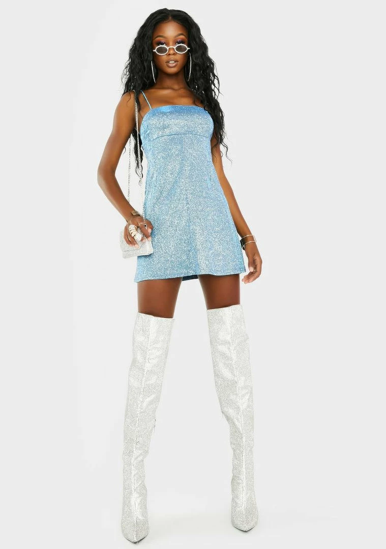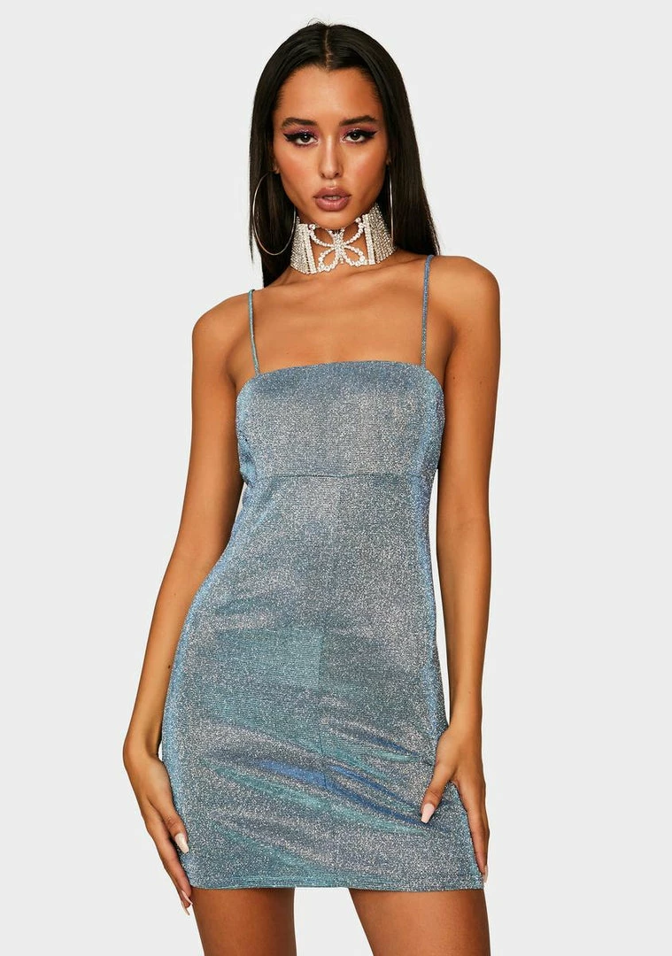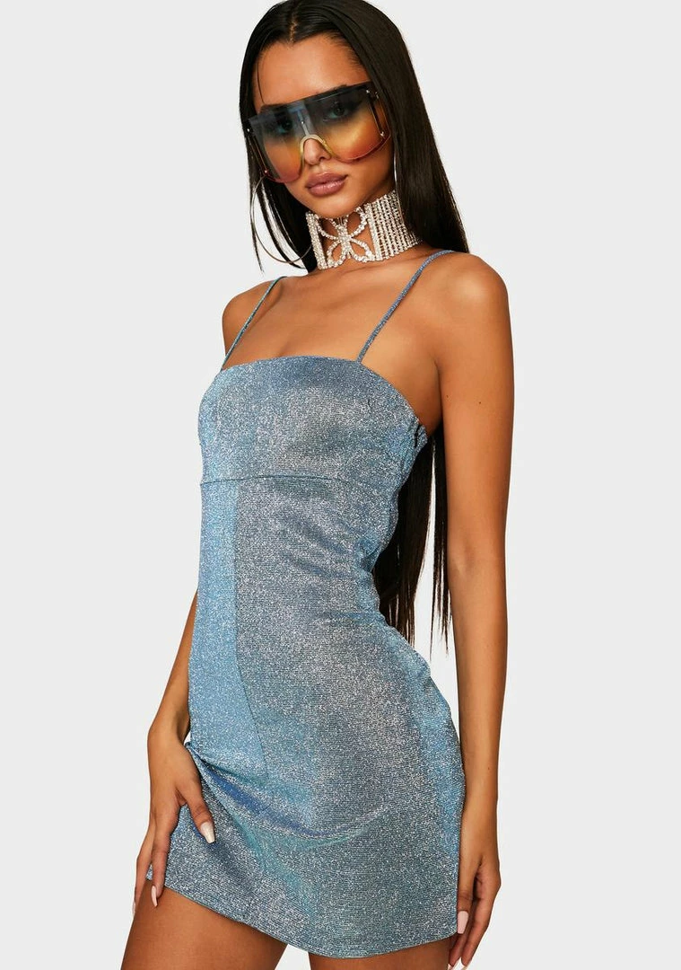 Momokrom Dresses Blue Glitter Bodycon Dress