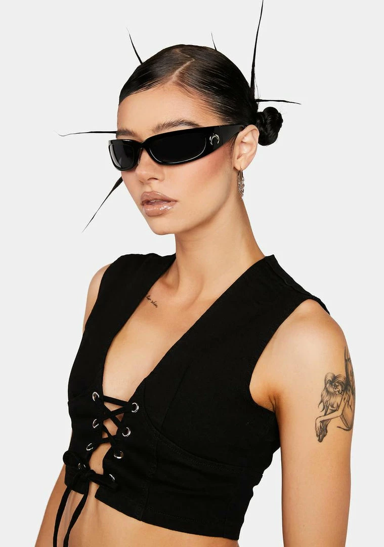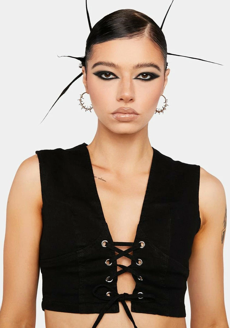 cuz you want it, you got it. This corset top has structured paneling, a plunging neckline, a cropped fit, and adjustable front tie closures.