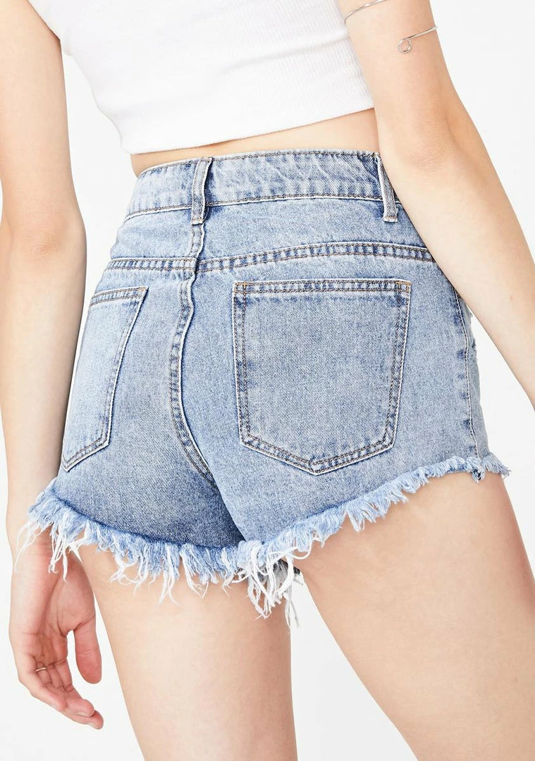cuz youâre a summer bb at heart. Got ya waitinâ on the sunshine in these high-waist denim shorts that have distressing all ova, five pockets, Nâ a front zip closure.