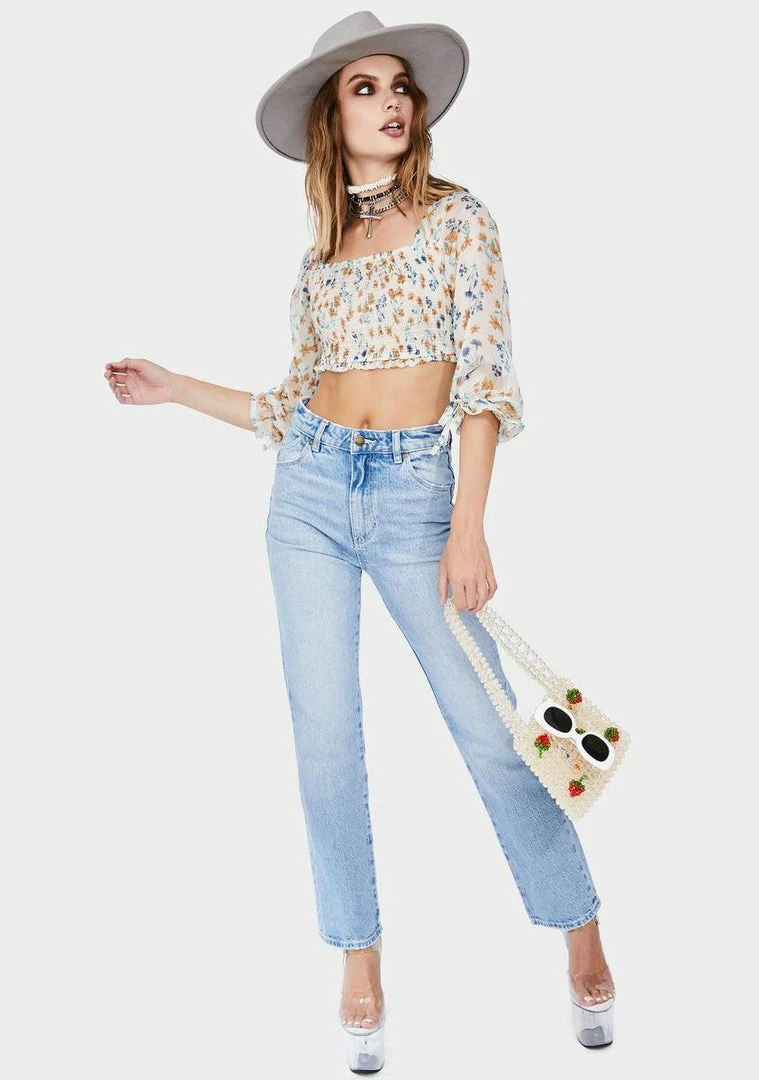 because youâre ready to glow up this summer. This long sleeve crop top has a square neckline, smocked bodice and floral print all over.
