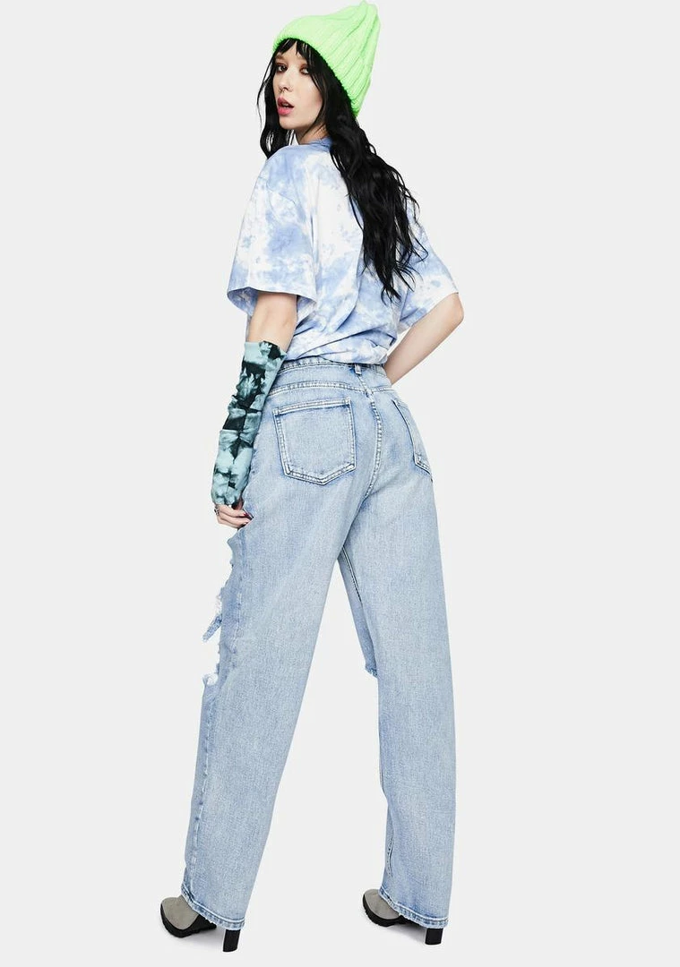 cuz you play by your own rules. These high waist boyfriend jeans have punk distressed details, a loose tapered fit, a classic five-pocket design, and a buttoned zip closure.