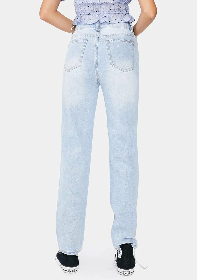 Momokrom Light Wash Straight Leg Denim Jeans Bottoms