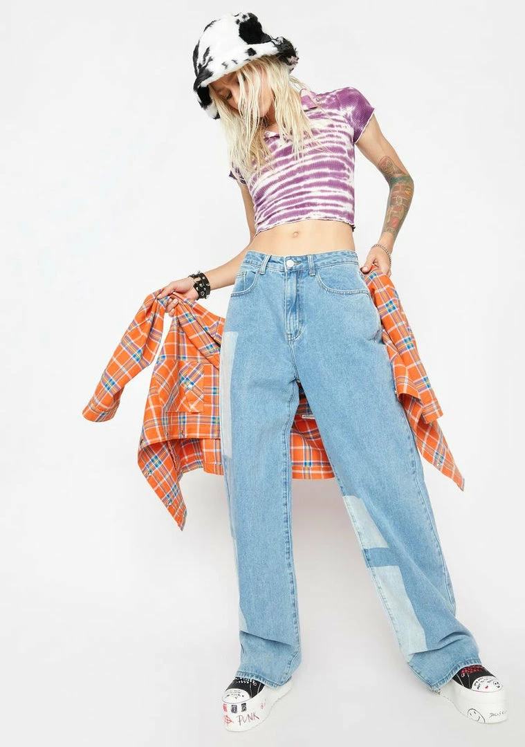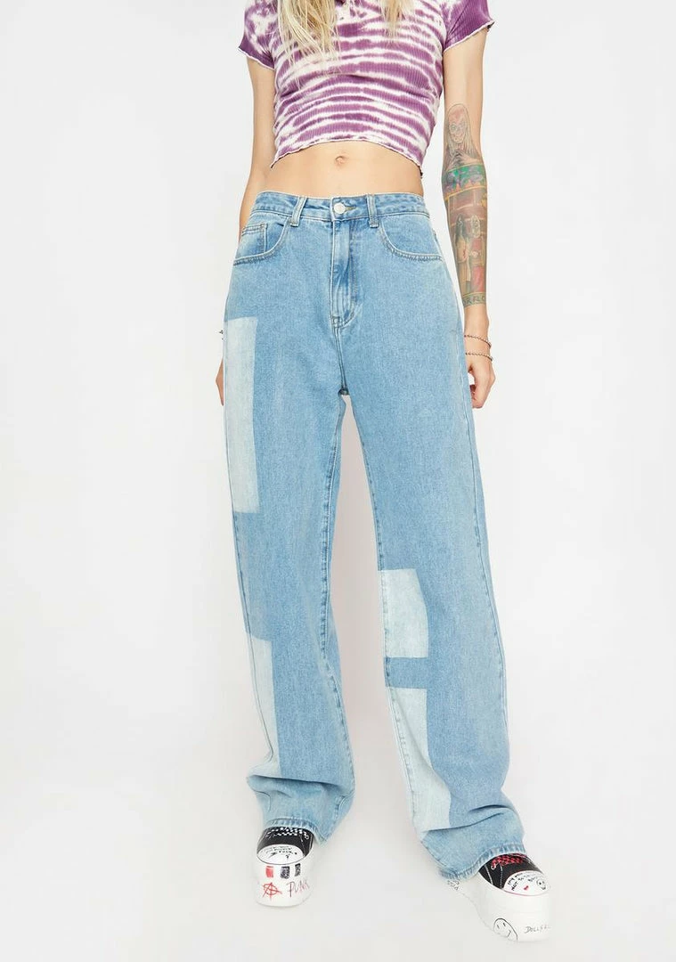 cuz you are ahead of the trends. Show off your newest fit in these oversized jeans with patches.