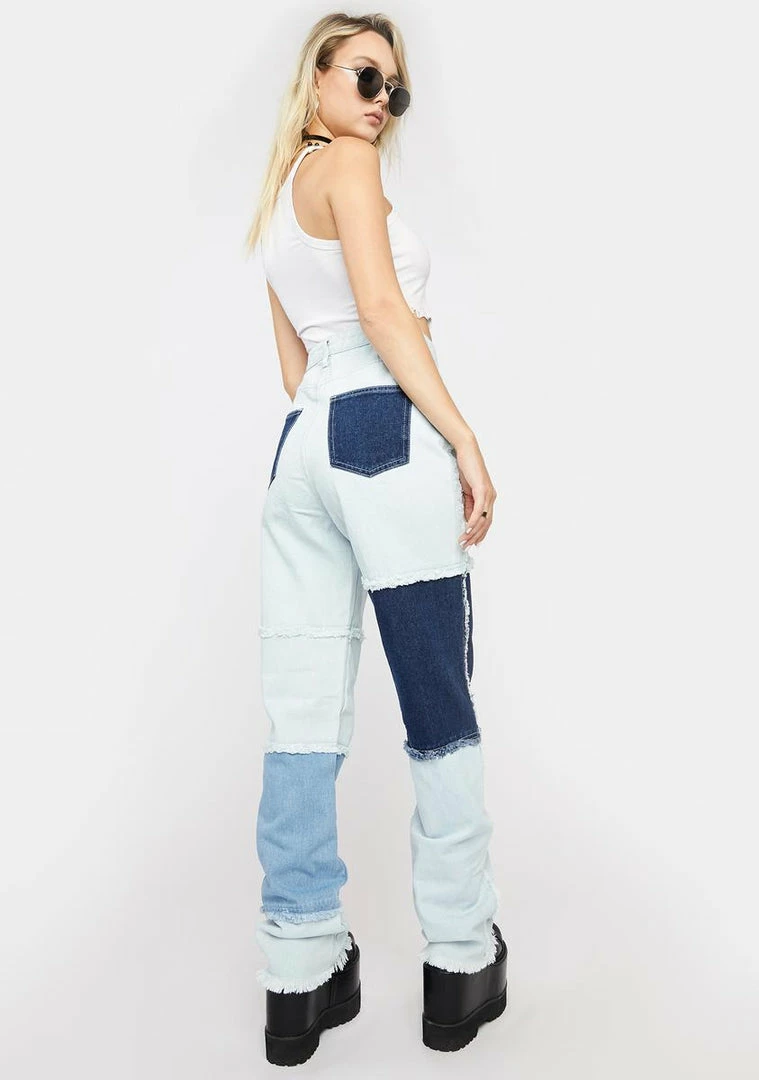 Momokrom Patchwork Long Straight Leg Jeans Bottoms