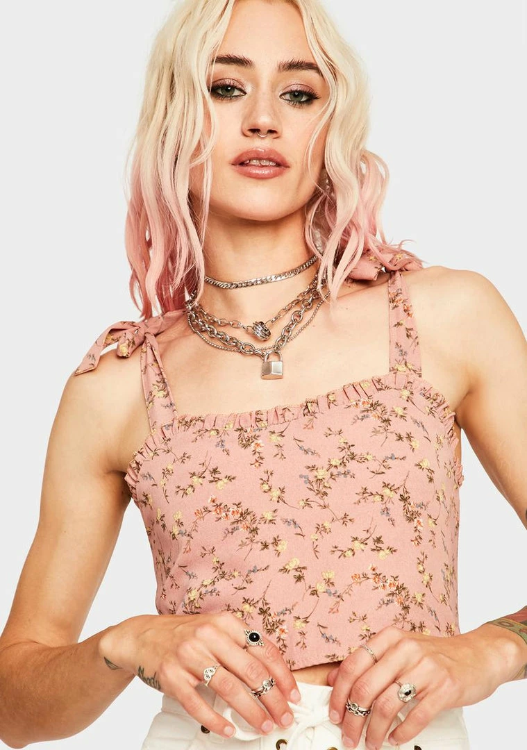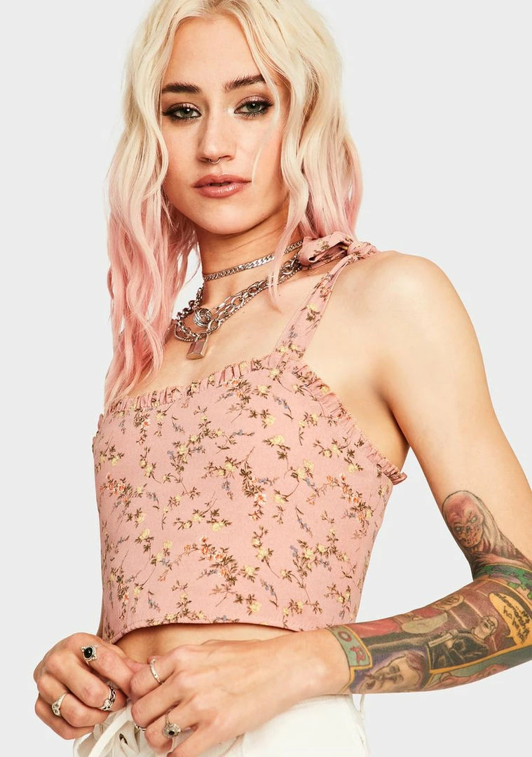 Momokrom Pink Ruffle Floral Tie Top Tops