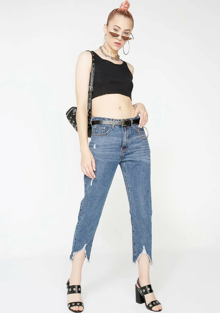 cuz ya live on the edge bb. Look dope AF in these distressed denim jeans that have classic pockets, midrise fit, and raw AF hemline.