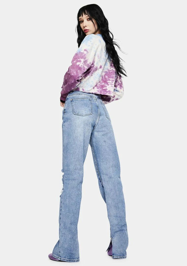 Momokrom Split Hem Light Wash Straight Leg Jeans Bottoms