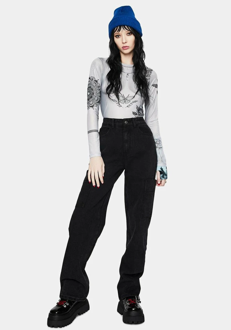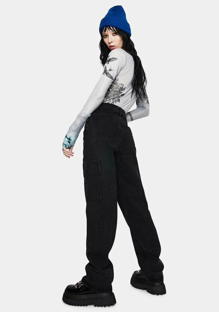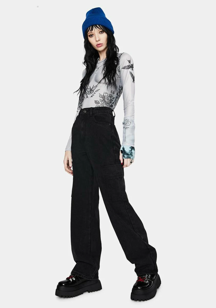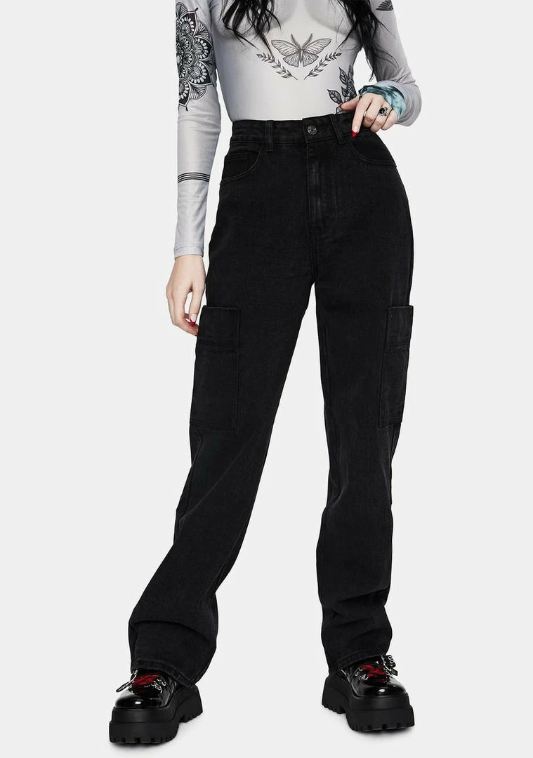 Momokrom Washed Black Wide Leg Cargo Jeans Bottoms