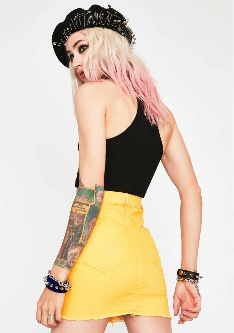 Momokrom Yellow Distressed Denim Mini Skirt Bottoms
