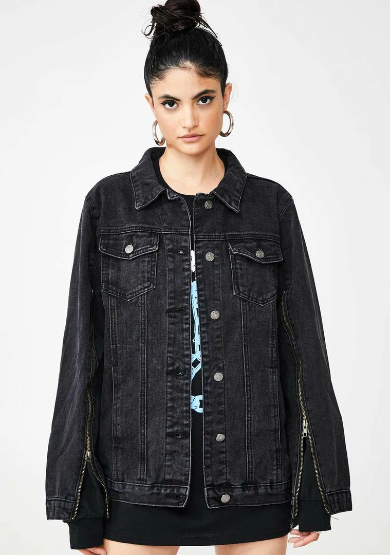 cuz itz a MF necessity, babe! Keep it kewl AF in this long sleeve jacket that has a pointed collar, front button closures Nâ zip deetz on the sleeves.